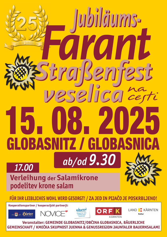 Die Familie Pratnekar stellt seit Jahren heimische Obstbrände, Liköre, Sirupe und Essige her – um nur ein paar Besonderheiten zu nennen. An Auszeichnungen happert’s bei ihnen aber auch nicht. Wir sind besonders stolz, sie bereits seit Jahren auch zu unseren Ausstellern am Farantfest in Globasnitz zählen zu können.